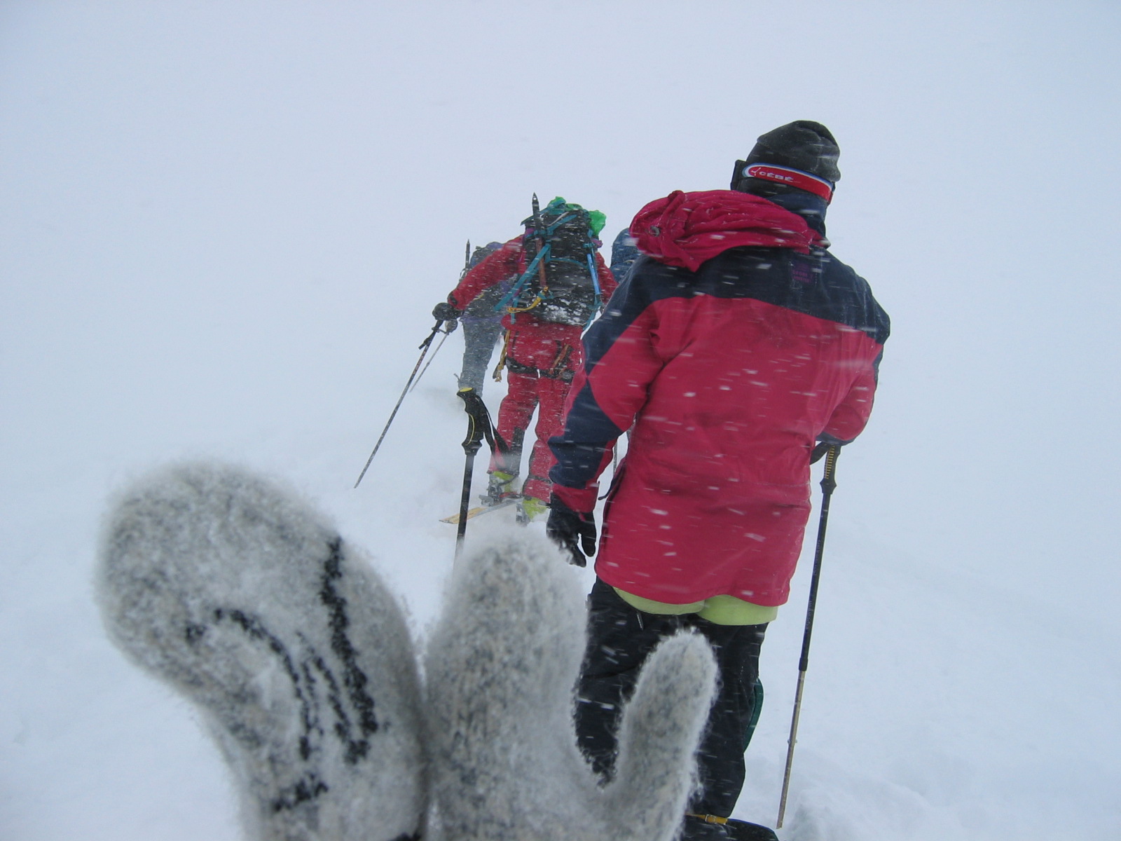 Attrezzatura e abbigliamento: attrezzatura da sci alpinismo pelli di scorta (almeno un paio ogni due persone), pala, a.r.v.a., sonda, imbracatura,piccozza, ramponi, sciolina, lampada frontale almeno due cambi per l’intimo, piumino si consiglia di portarlo guanti almeno due paia, occhiali da sole, crema protettiva, berretta, cappello per sole, pantaloni e sovrapantaloni,giacca impermeabile, Inoltre verrà organizzato materiale comune fra tutti i partecipanti.